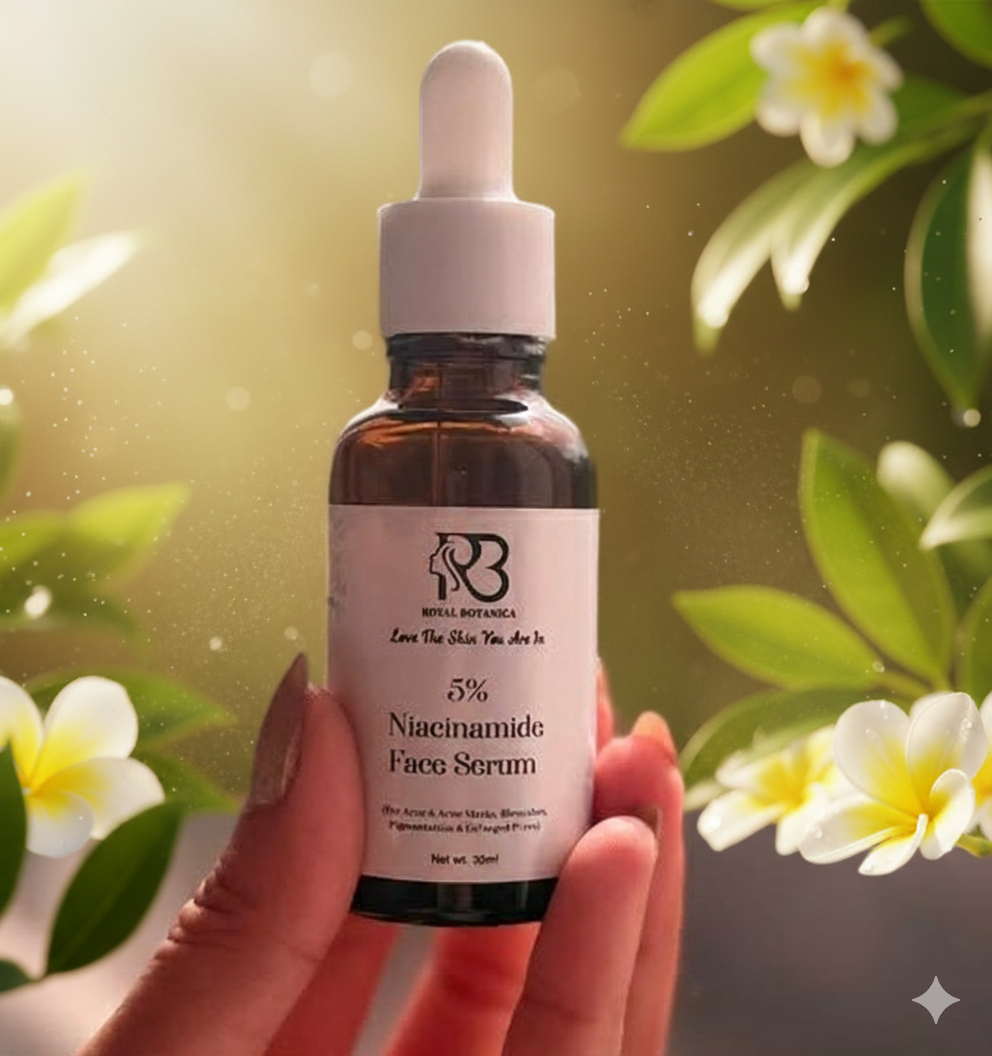 Royal Botanica’s 5% Niacinamide Face Serum is your go-to solution for acne, acne marks, blemishes, pigmentation, and enlarged pores. Powered with Niacinamide (Vitamin B3) and enriched with Centella Asiatica, Green Tea Extract, Panthenol, and Hyaluronic Acid, this lightweight serum strengthens your skin barrier while delivering deep hydration and visible brightness.