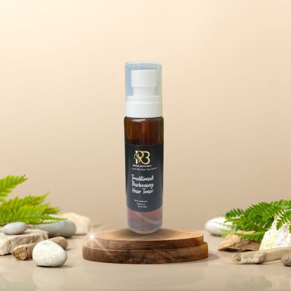 Royal Botanica’s Traditional Thickening Hair Tonic is a lightweight, herbal blend formulated with time-tested Ayurvedic botanicals and essential vitamins to strengthen hair from the roots and encourage natural thickness. Enriched with Jatamansi, Brahmi, Bhringraj, Hibiscus, and Aloe Vera, this tonic is designed to revive thinning hair, improve scalp health, and promote healthy growth without weighing hair down.